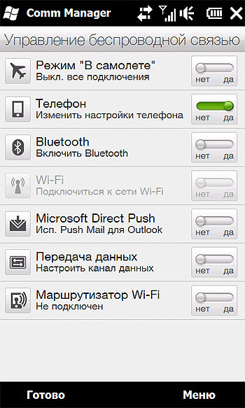Там добавилась интересная опция "Маршрутизатор Wi-Fi". Она служит для подключения по Wi-Fi к Интернету компьютера (ноутбука) через HD2. То есть если у вас HD2 подсоединен к Интернету, например, через 3G, то вы его можете сделать как бы роутером Wi-Fi и через него выводить в Сеть ноутбук (компьютер) с Wi-Fi. Это полезная возможность.