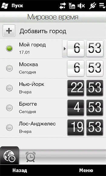 Мировое время и будильники - подсистема от HTC. Значительно удобнее и красивее сделано, чем в WM.