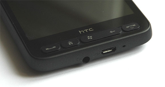 На нижнем торце - стандартный разъем 3,5 мм под наушники, выход microUSB (на всех других своих моделях HTC используют miniUSB) и отверстие микрофона.