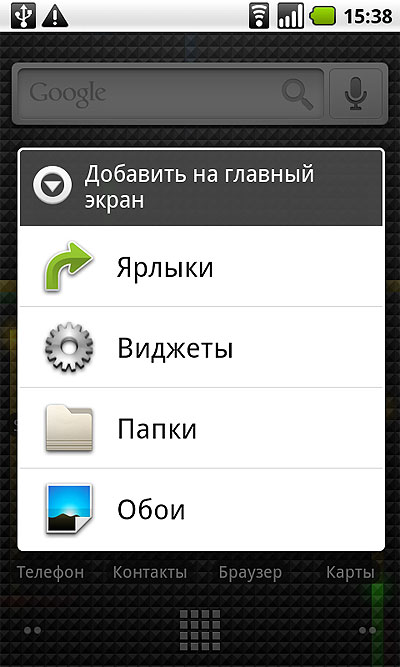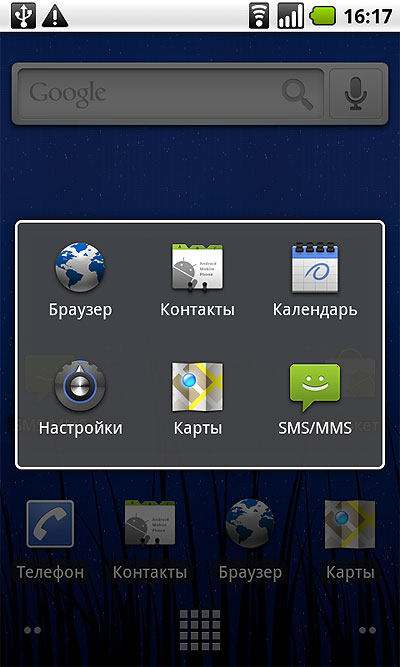 После запуска устройства перед вами появляется главный (вызываемый по клавише "Домой") десктоп.