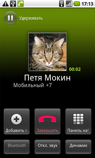 В процессе набора номера и разговора можно задать различные опции: включить или отключить гарнитуру, отключить звук.