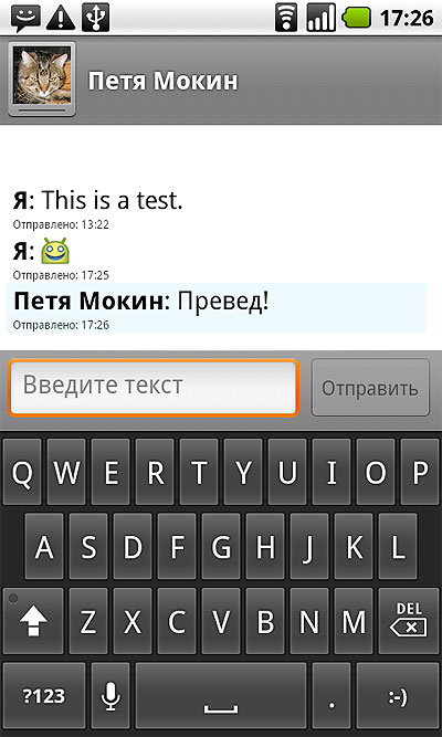 Стандартная клавиатура здесь чисто андроидная. И при том, что устройство имеет русский интерфейс, в клавиатуре вообще нет кириллицы - это интересная мысль.