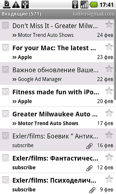 Почта устроена неплохо. Есть отдельный вариант почты, заточенный под GMail, но есть и приложение E-Mail, которое можно настроить на любой ящик.