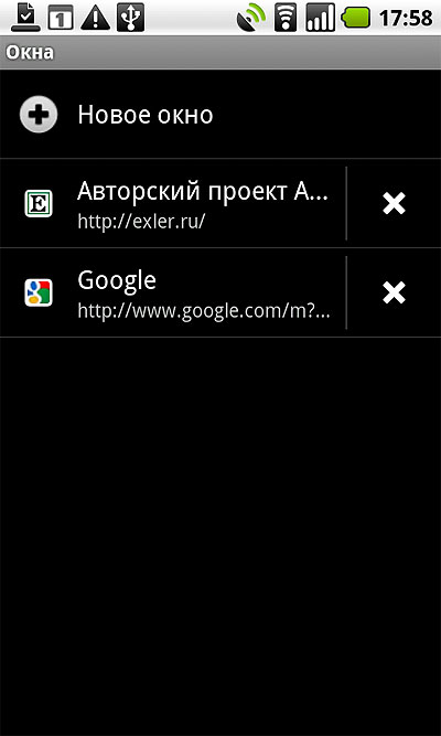 Многозадачка и закрытие приложений здесь (и вообще в Android) решены достаточно своеобразным образом. У приложений как класса нет пиктограммы или пункта меню "Закрыть". Когда вам нужно выйти из приложения, просто нажимаете кнопку "Домой". Старое приложение будет болтаться загруженным в режиме "Пауза" (или в активном режиме, если оно должно что-то делать в фоне). Доступ к запущенным программам производится по длинному нажатию клавиши "Домой" - при этом появляется окно со списком.