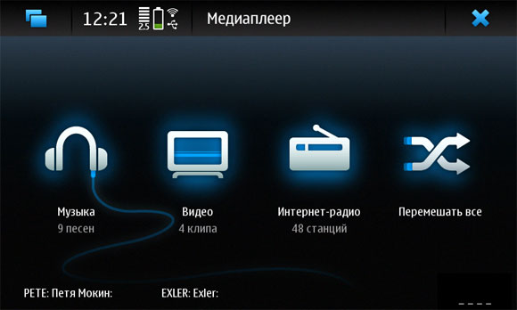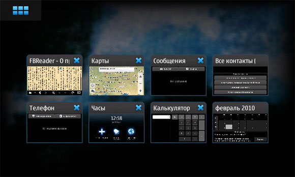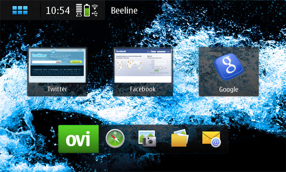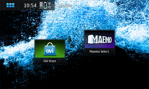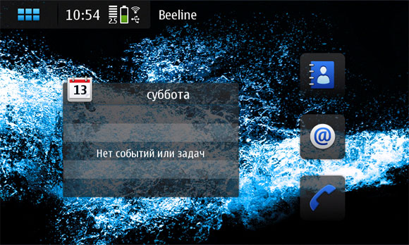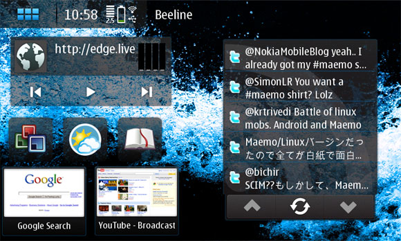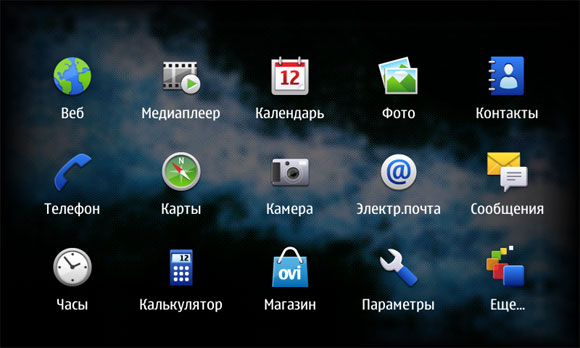 Это рабочий стол Maemo. Точнее, один из рабочих столов - их всего четыре, они закольцованы и меняются жестом по экрану слева направо или справа налево.