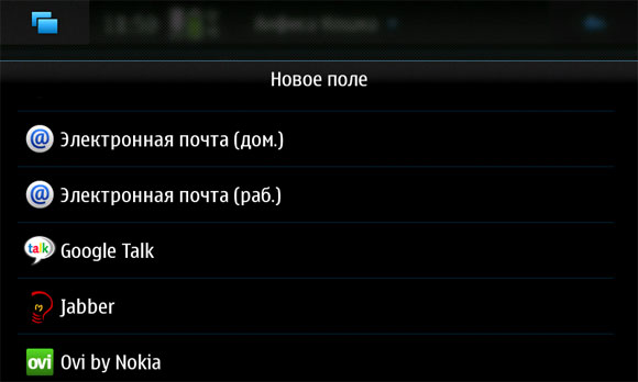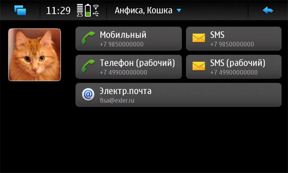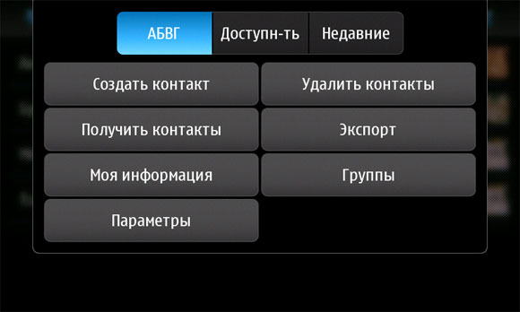 Меню контактов - следующее.