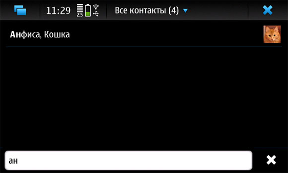 Если нужно найти контакт, просто начинаете набирать имя или фамилию - производится быстрый поиск.