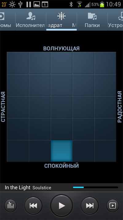 Штатный mp3-плейер - по папкам-то он отбирает. Только папки выводит не нормальной иерархической структурой, а тупым плоским списком. Впрочем, на Андроиде почему-то вообще музыкальные плейеры принято делать с какими-нибудь извращениями.