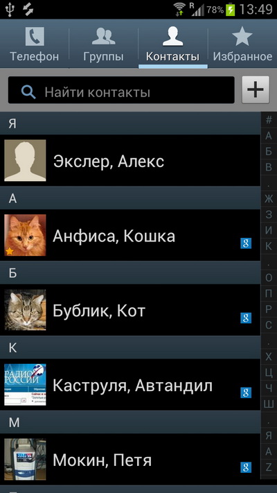 PS: Судя по иконкам - эти контакты синхронизирцются с гугла. Но где тогда остальные контакты?
