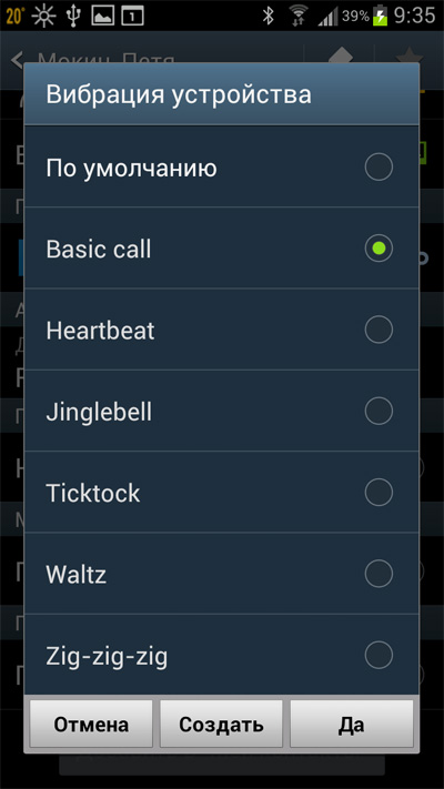 По контакту можно менять не только мелодию звонка, но и вид вибровызова - это забавно и, в общем, полезно.