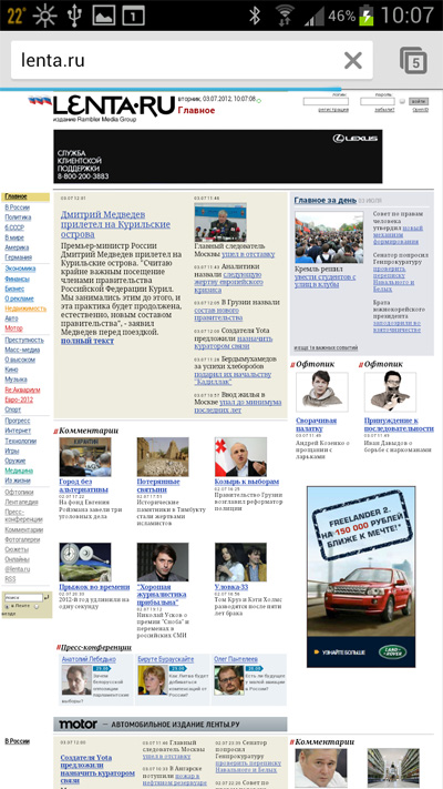 У встроенного браузера есть странная особенность. В нем, как выяснилось, отдельно настраиваются параметры яркости экрана - через меню. Поначалу это очень удивляло - в системе выставлена одна яркость, заходишь в браузер - там яркость в два раза ниже. Оказывается, это настраивается. Но вот зачем так сделано - непонятно.