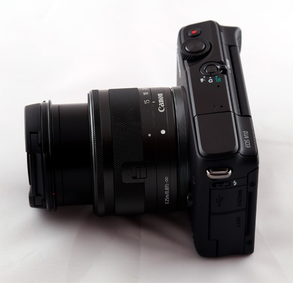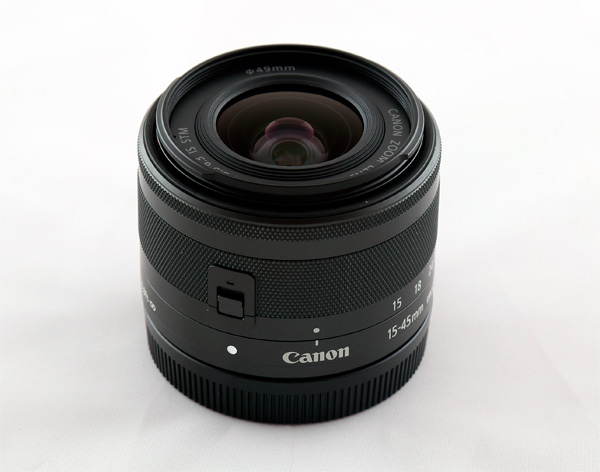 Китовый объектив, которым комплектуется камера, - это Canon EF-M 15–45 мм (24–72 35-мм эквивалента), F3,5–6,3.