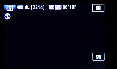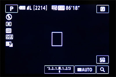 Информация на экране при съемке автоматом. Правая верхняя пиктограмма - переход в настройки (оно же - клавиша Set). Правая нижняя - включение-выключение режима съемки прикосновением к экрану. Сразу скажу, что теперь эта кнопка не включается касанием одежды, как это было у модели М, чем она жутко раздражала.