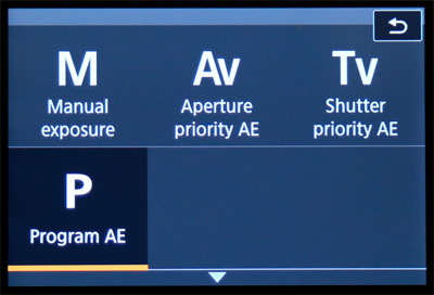 В режиме программного автомата также добавляются выбор режима фокусировки (отслеживание лиц), баланс белого, стиль картинки, автокорректировка яркости и контраста и вид замера экспозиции.