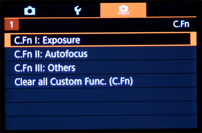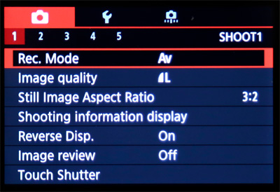 При нажатии кнопки "Меню" появляются уже всякие тонкие настройки камеры в традиционном стиле, принятом у Canon.