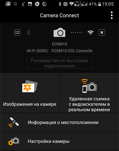 Если нажать кнопку сопряжения со смартфоном, то камера создаст свою сеть Wi-Fi, к которой можно подключиться со смартфона, и с помощью приложения Camera Connect можно скачивать фото и видео с фотокамеры, что-то там как-то редактировать и делиться всем этим. Также можно управлять камерой удаленно, а это уже вполне интересно.