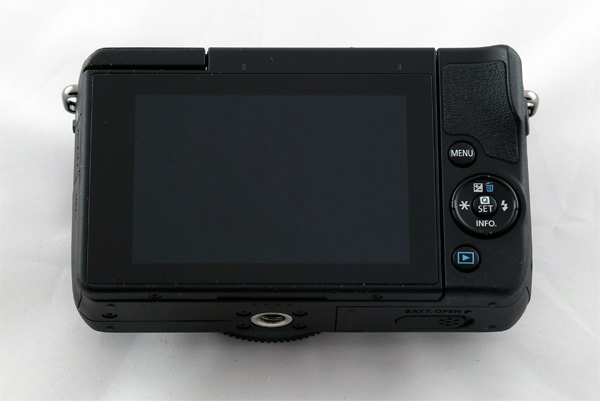 Многие журналисты в обзорах сетуют на то, что дисплей не поворачивается вниз хотя бы на 45 градусов, как это сделано в некоторых камерах Sony.