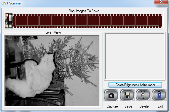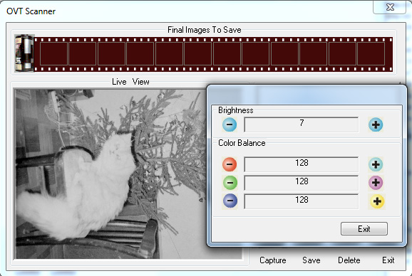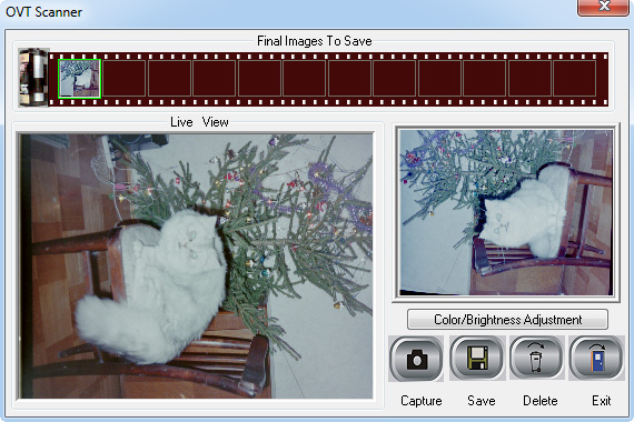 Выбираете режим, появляется окно сканирования, которое работает в режиме реального времени - то есть что у вас там помещено в сканер, то и показывается. Видите, что кадр помещается не целиком - вращаете правую ручку до совмещения границ. После того как кадр будет нормально установлен, нажимаете кнопку Capture для окончательного сканирования, затем Save - чтобы сохранить кадр в заранее указанной папке.