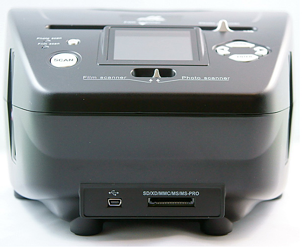 Это совсем интересная модель. Кроме того что данный сканер позволяет легко и быстро сканировать пленки и фотографии, он еще и работает вообще без компьютера, сбрасывая отсканированные изображения на карту памяти, которых тут поддерживается аж несколько штук - SD/MMC/MS/MS-PRO.