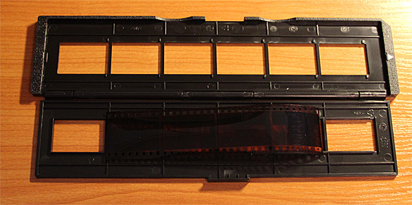 Пленка вставляется удобно - там есть специальные направляющие. Однако есть и определенный минус: рамка не рассчитана на работу с бобиной, пленку придется резать на куски по шесть кадров. Но это вряд ли такая большая проблема, тем более что после сканирования пленка уже вообще, по сути, не нужна.