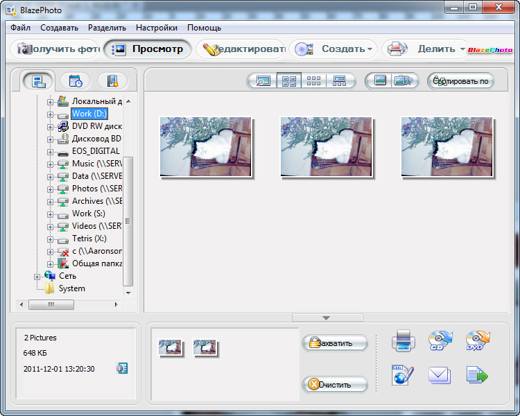 Программа на самом деле очень простая и удобная: дерево папок, отсканированные изображения в разных видах, запись их на CD/DVD или публикация слайд-шоу в Интернете, но главное - сканирование пленки в сканере.