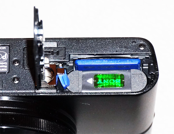 Карта вставляется и вынимается свободно (в отличие от некоторых других моделей Sony).