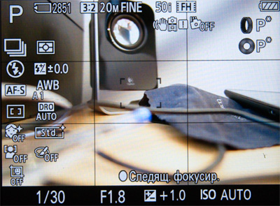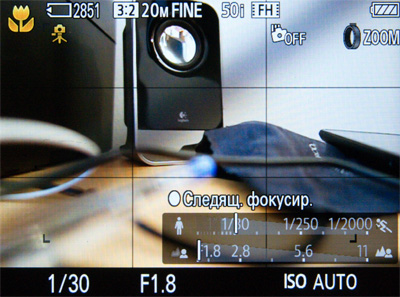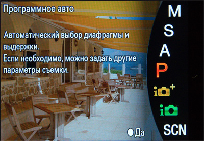 Здесь выдержка и диафрагма выставляются автоматически, но их соотношение можно менять вручную, изменяя диафрагму зубчатым колесом, также можно настраивать различные другие параметры (ISO и так далее).
