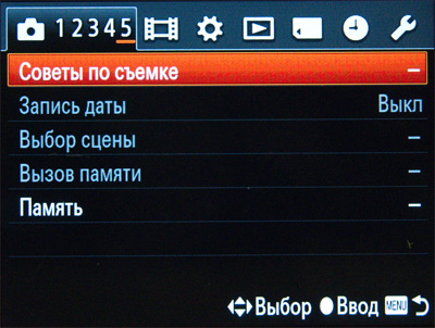 Режимы съемки здесь несколько отличаются от NEX-5N. Вот их список с пояснениями.