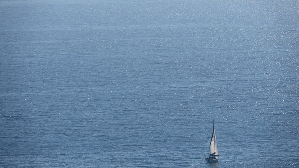 Из верхнего кадра выхватил парусник на 600 мм. (Без видоискателя очень трудно удержать объект съемки там, где нужно.)