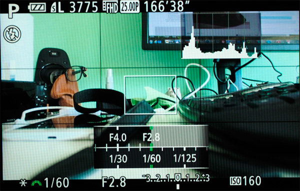 Кнопка "*" выводит на дисплей линейку соотношений диафрагма/выдержка, но если вы за две секунды не начнете зубчатым колесом менять экспозицию - линейка исчезнет. Кто не успел - тот опоздал. Странное решение.