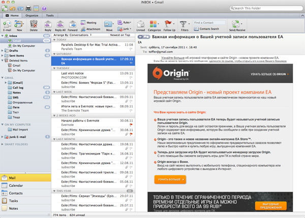 5.перенос почты с Виндового Оутлука в Маковый мейл - дело прямости рук. Если прямые - никаких особых трудностей