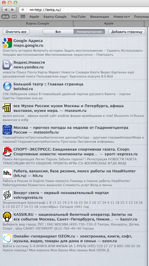 Из интересных особенностей Safari можно выделить следующие.