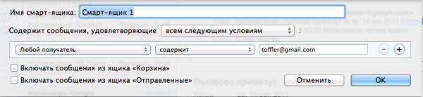На самом деле смарт-ящик мало чем отличается от установки фильтра с перемещением писем в конкретную папку, но смарт-ящики, во-первых, в списке выдаются отдельно, а во-вторых, их создавать быстрее, чем обычный фильтр.