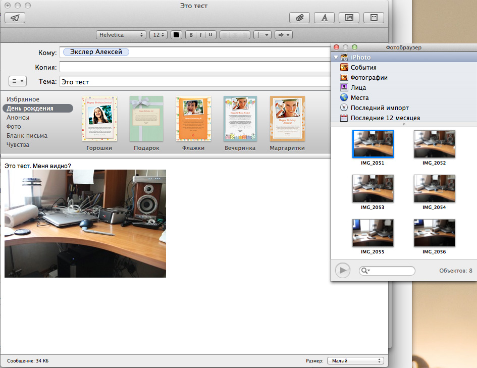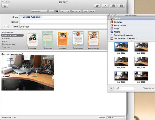 Редактор писем - удобный и наглядный, изображения в него можно перетаскивать прямо из вызываемого по клавише фотобраузера.