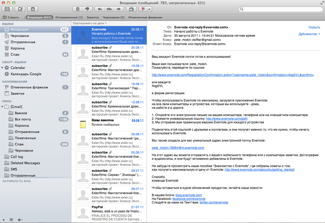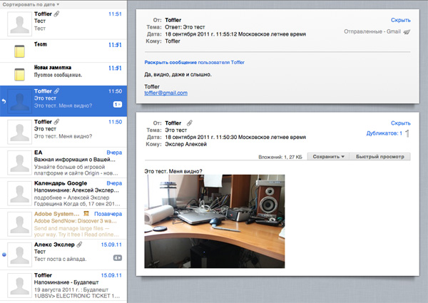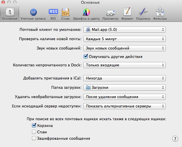 То же справедливо для почты из программы Mail.