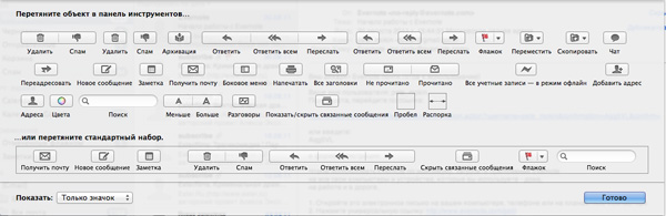 Панель инструментов настраивается вполне гибко - большинство действий можно выводить пиктограммами.