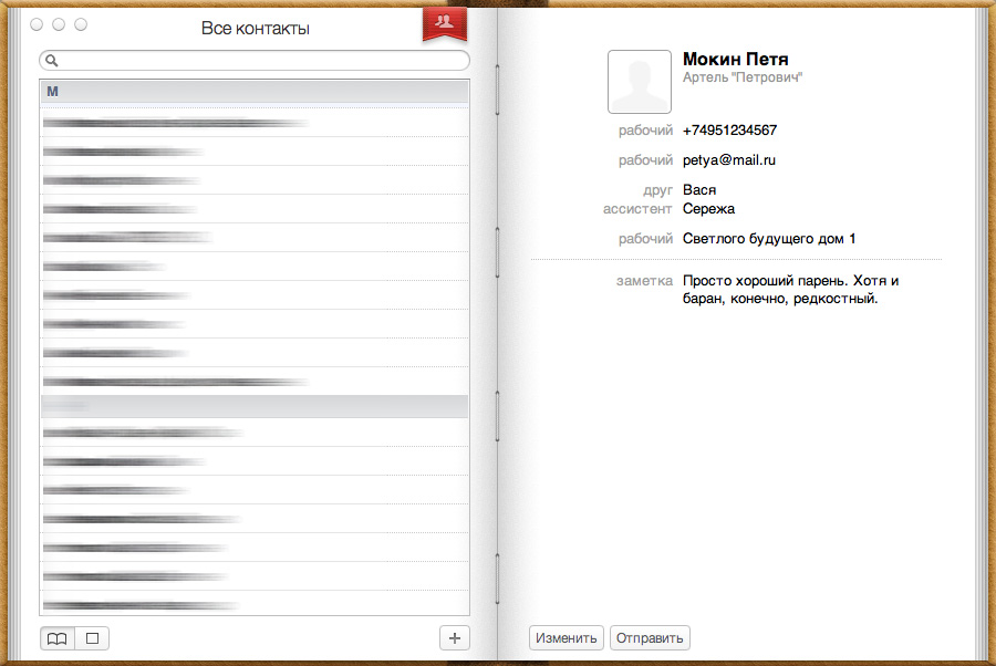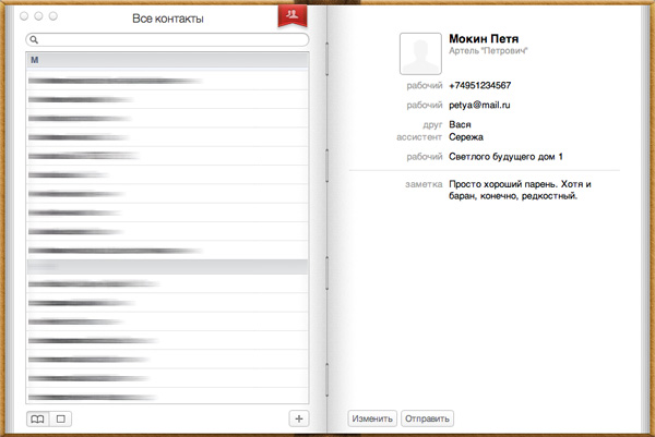 Адресная книга тут один в один как в iOS.
