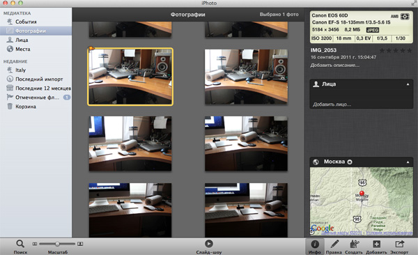 iPhoto - просмотр изображений