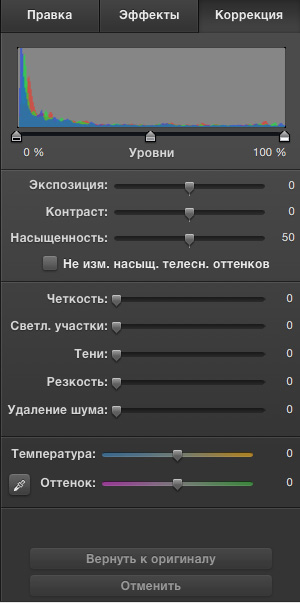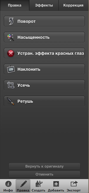 В режиме правки с изображением можно производить различные действия по редактированию, задавать какие-то эффекты, корректировать параметры.