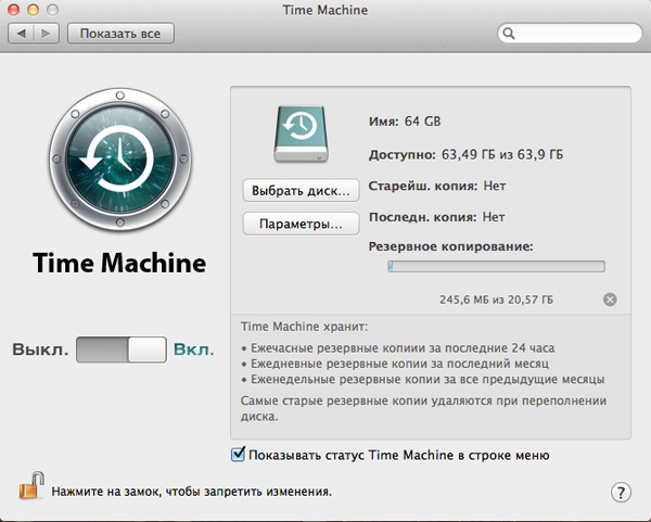 Резервные копии - приложение Time Machine