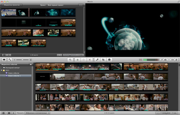 Компьютеры Apple всегда славились хорошей работой с графикой и видео. Здесь для обработки видео присутствуют две программы - iDVD и iMovie. Первая - для простого и быстрого создания фильмов DVD из фото, музыки и видео, вторая предназначена также для создания фильмов, но уже с инструментами монтажа.