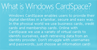 Ну а уж всевозможные форумы, блоги и чаты, для участия в которых всегда требуется идентификация, - там использование CardSpace экономит массу времени, да и значительно повышает безопасность.