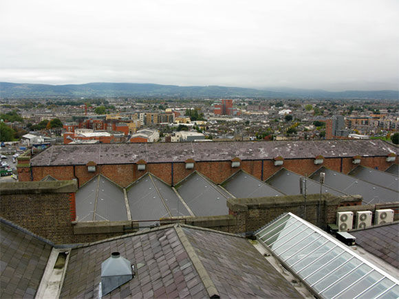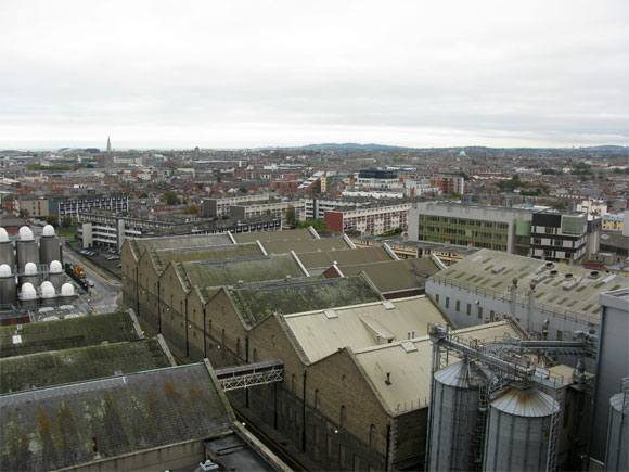 Сам бар расположен в круглом помещении с прозрачными стенами, откуда открывается шикарный вид на Дублин. Правда, процентов восемьдесят этого вида занимает сам завод.