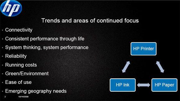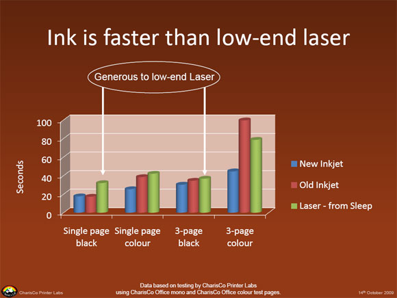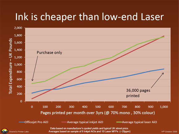 Вторая часть выступления Питера была посвящена сравнению струйных и лазерных принтеров. И там Питер привел достаточно интересные диаграммы.