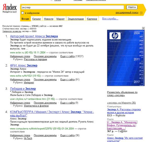 Первая ссылка - слава богу, "Экслер.ру". Скромно и со вкусом. Четко в соответствии с той самой релевантностью.