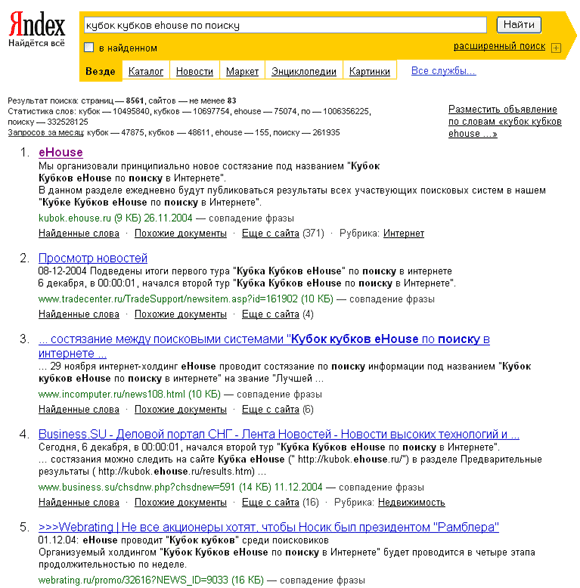 Первая ссылка - та самая страница "Кубка Кубков eHouse по поиску".