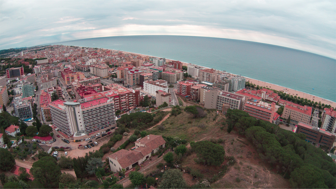 У объектива камеры очень широкий угол (фактически - "рыбий глаз"), поэтому горизонт выглядит сильно закругленным и это впоследствии нужно править ("Фотошопом" или "Лайтрумом").