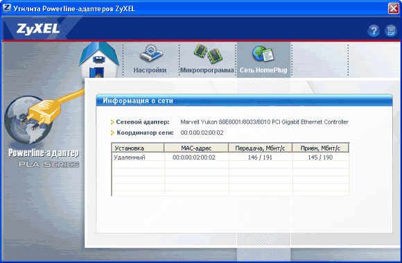 Для наглядности я перекачивал немаленькие объемы однородных данных (видеоклипы, архивы) и замерял реальную скорость в мегабайтах (подчеркиваю) в секунду. Моя обычная локальная сеть с роутером ASUS WL-500W при перекачке с основного компьютера на ноутбук дает где-то 6 мегабайт в секунду. (Оно понятно, что для стомегабитной сети эта скорость должна быть примерно 8-10 мегабайт в секунду, но тут тоже влияют некоторые другие факторы.) При подключении адаптера в соседнюю розетку скорость была где-то 5 мегабайт в секунду. В соседней комнате - 3,5 мегабайта в секунду. В комнате через холл - примерно 2,5 мегабайта в секунду. Однако при подключении к самой дальней от роутера розетке скорость была 3,5 мегабайта в секунду, что, впрочем, вполне объяснимо - эта розетка, судя по схеме электропроводки, висела на одном и том же проводе, что и роутер.