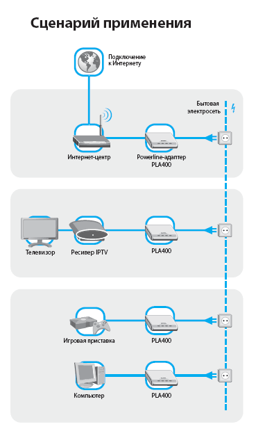 Схема была такая (всё ZyXEL, кроме последнего): VDSL-модем P841 - рутер P334WT - PLA400 - PLA400 - MS XBOX360. То есть без компьютеров, в стиле DLNA.