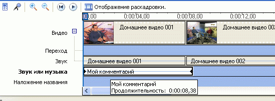 После того как комментарий будет записан, он появится на звуковой дорожке: